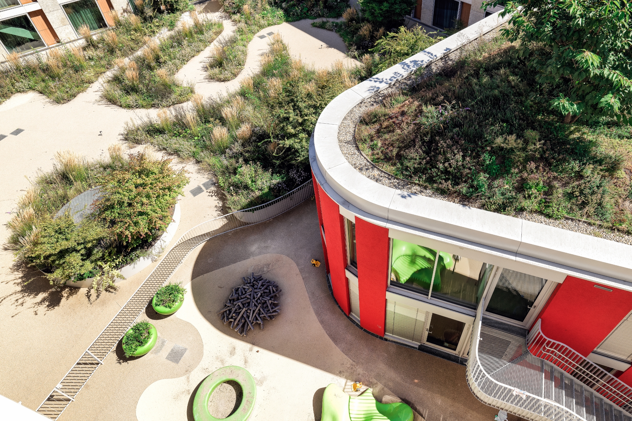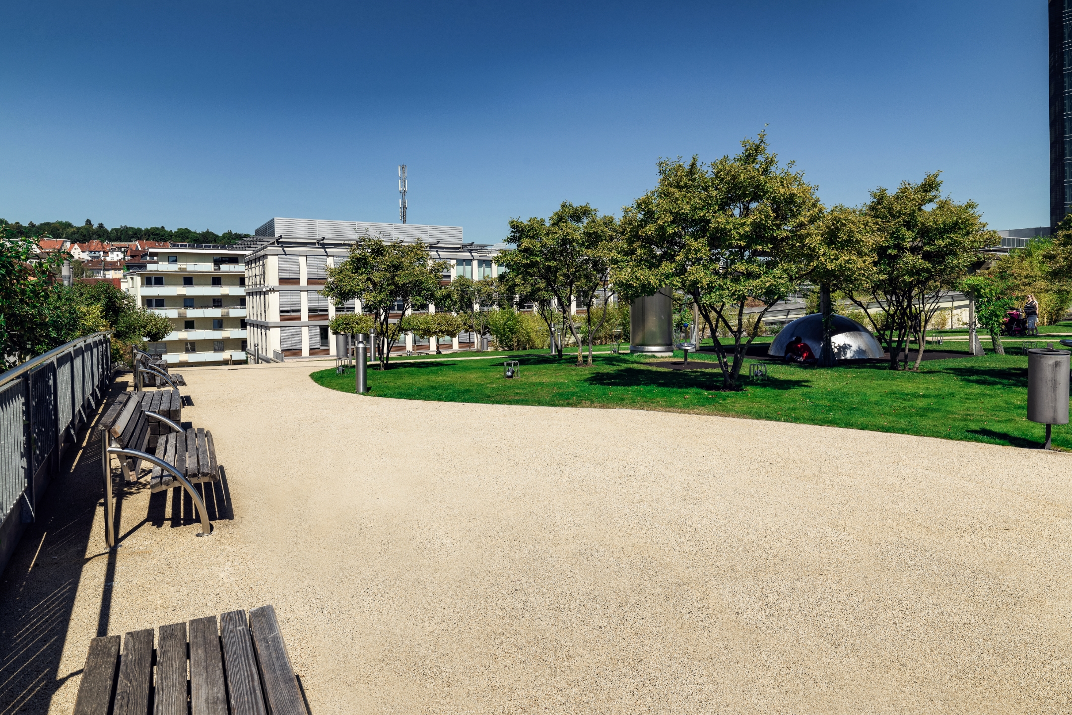Neben der Umweltverträglichkeit hat der Belag noch viele weitere positive Eigenschaften: er ist belastbar und grundwasserneutral, schall- und feinstaubschluckend, witterungsbeständig sowie rutsch- und abriebfest.